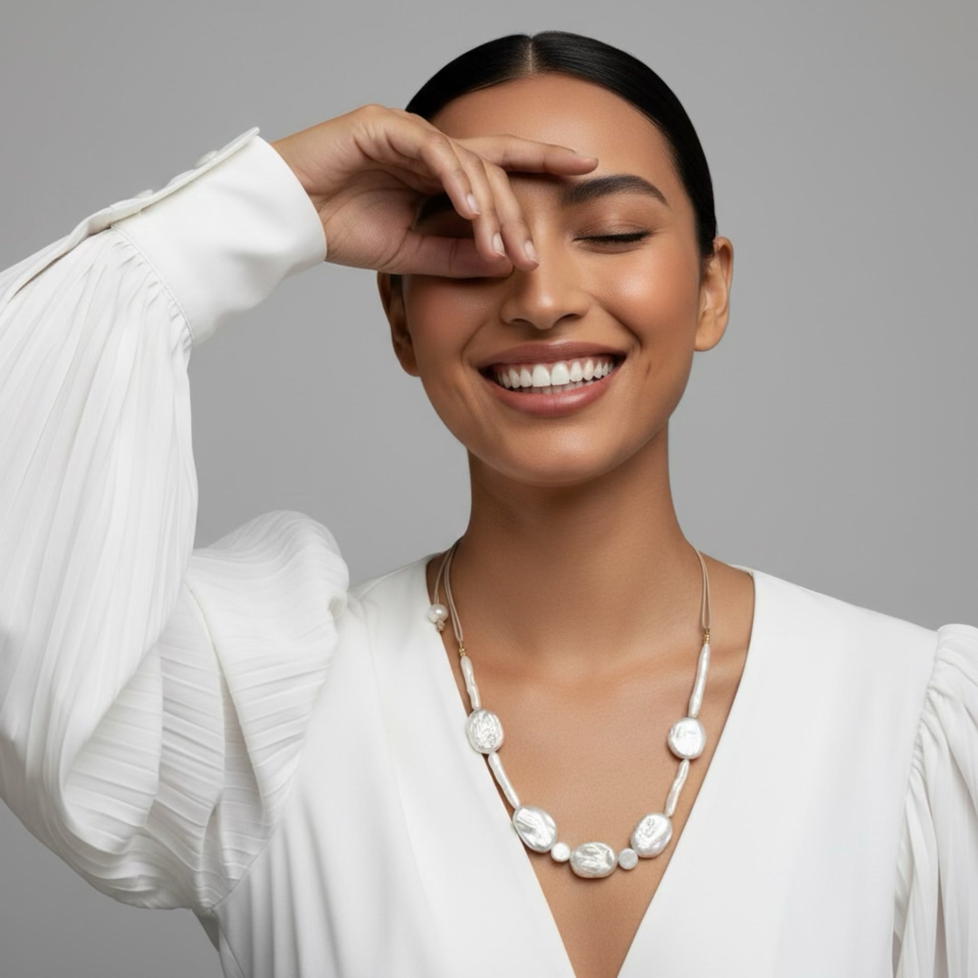 Three pearl shapes, infinite style possibilities. The Amulet Pearl Trio combines mini coin, oval, and stick freshwater pearls on an adjustable necklace that moves with you. Handcrafted in limited quantities, making it an exclusive addition to your collection. Dress it up, dress it down, or stack it with friends. Pearls have never been this fun.