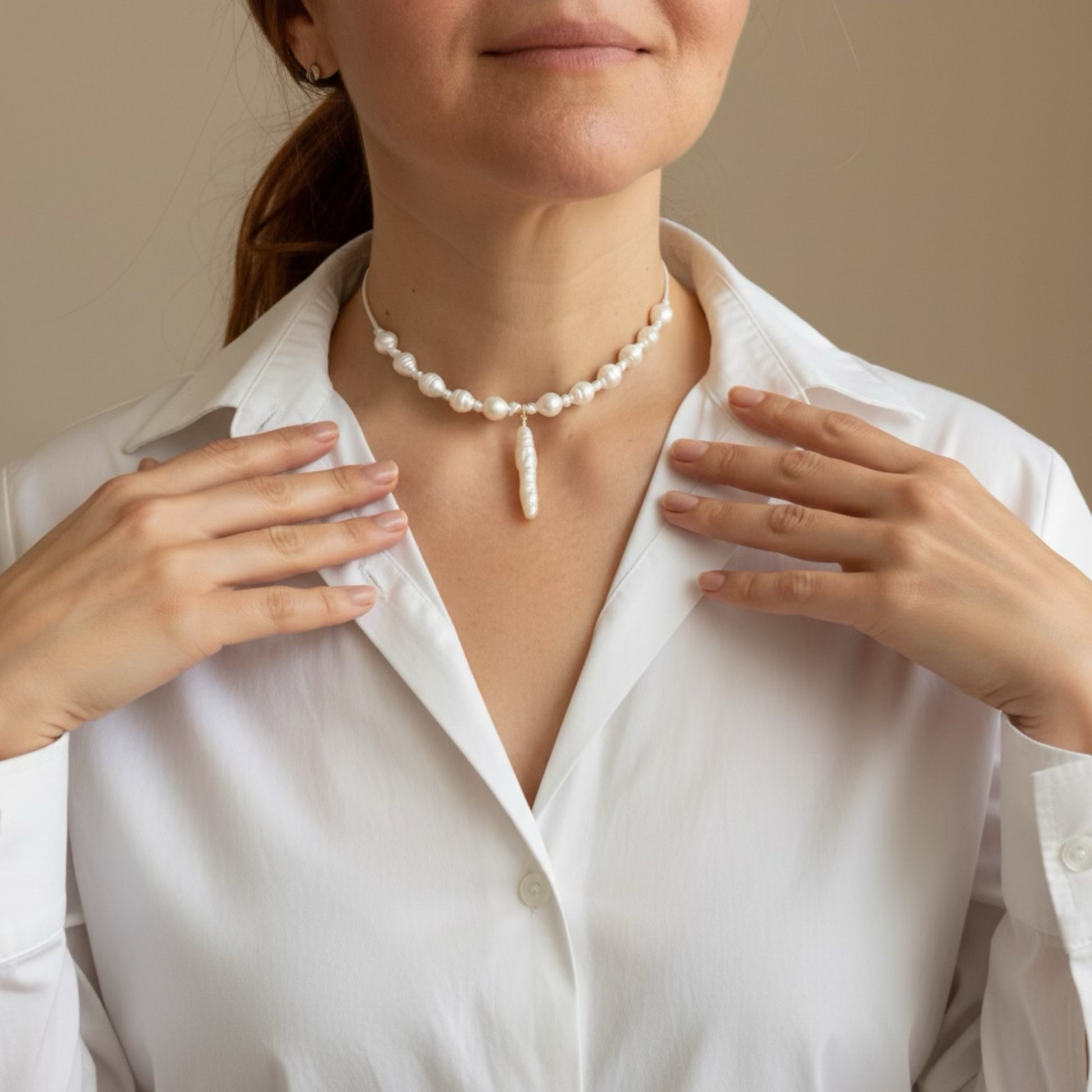 The Serenity Stick exemplifies refined craftsmanship with its carefully curated blend of lustrous freshwater pearls and an elegant stick pendant. Each necklace is individually handcrafted in limited quantities, ensuring exclusivity and distinction. The adjustable design offers versatility for any occasion, from intimate gatherings to formal events. A sophisticated statement piece that transcends trends and celebrates the timeless beauty of natural pearls.