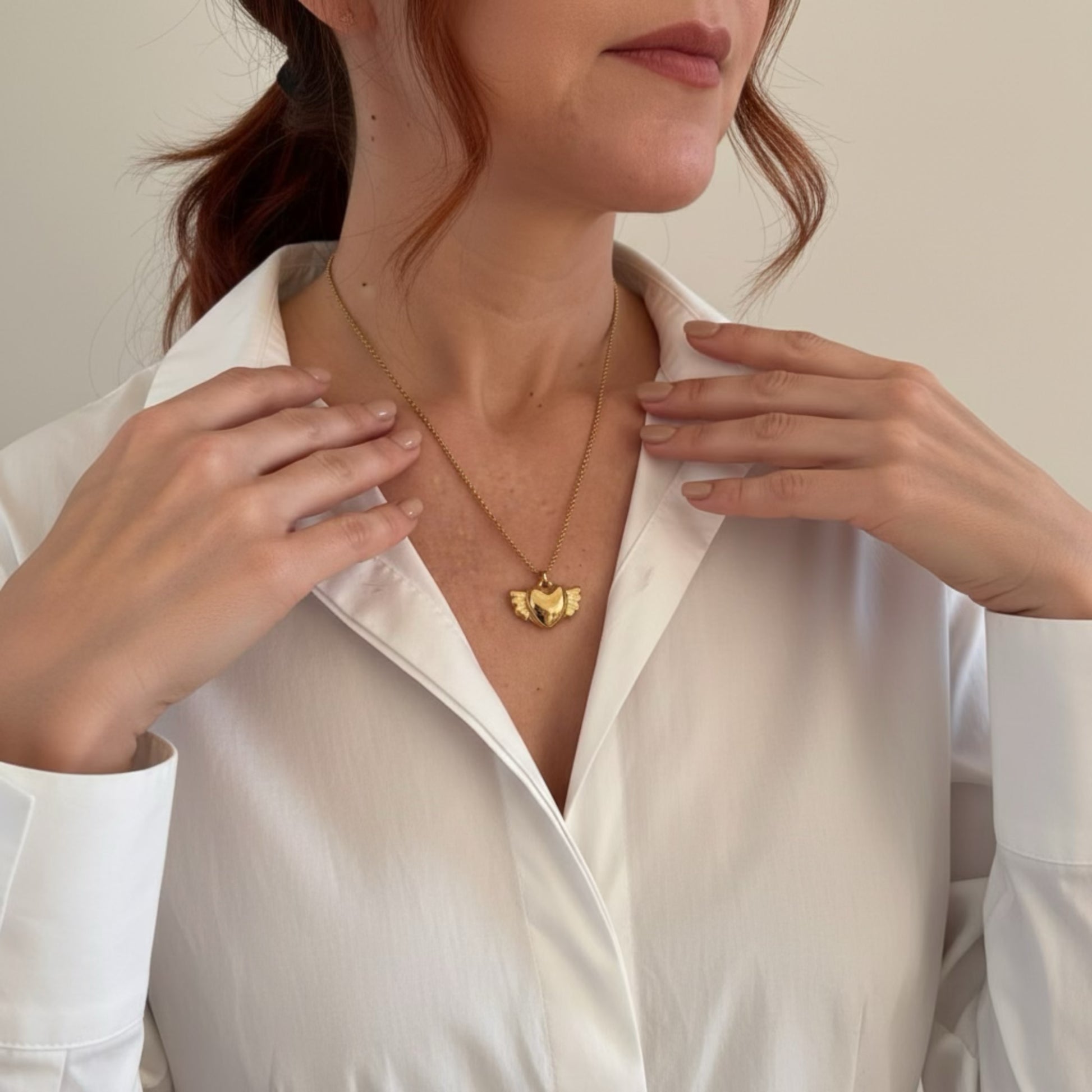 Meet your new favorite accessory! The Sunrise Heart necklace features a gorgeous golden-tone heart pendant that's ready to steal the show. Made from sturdy 304 stainless steel—it's built to keep up with your adventures. Whether you're dressing up for date night or keeping it casual, this charming heart pendant adds just the right touch of sparkle and warmth to any look. Simple, stunning, and totally you.